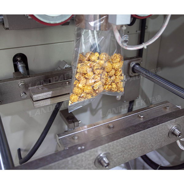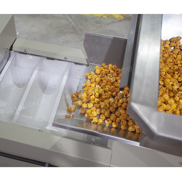 爆米花包裝機(jī)采用彩色觸摸屏和穩(wěn)定可靠的雙軸高精度輸出的PLC控制、制袋、計(jì)量、充填、封合、打碼、切袋一次性完成。氣路控制和電路控制電箱獨(dú)立分離,噪音小,電路更穩(wěn)定。采用雙皮帶伺服拉膜:拉膜阻力少,包裝袋成型好,更美觀,皮帶不易磨損。采用伺服控制, 實(shí)現(xiàn)高精度定位,尺寸準(zhǔn)確。采用外置式放膜機(jī)構(gòu),包裝膜安裝更簡(jiǎn)單、更容易。包裝袋的偏差調(diào)整只需在觸摸屏上調(diào)整即可,操作簡(jiǎn)單。整機(jī)采用封閉式機(jī)構(gòu),有效防止粉塵進(jìn)入機(jī)器內(nèi)部。