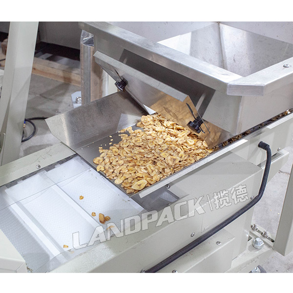 香蕉片包裝機(jī)是我司針對市場上面的一些香蕉干類型的油炸食品而研發(fā)的一款自動稱重包裝機(jī),該機(jī)由立式包裝機(jī)主機(jī)、10頭電子組合稱、Z型物料提升機(jī)組合而成。這臺機(jī)器的工作流程是:工作人員把物料倒入震動儲料斗當(dāng)中,通過物料傳輸機(jī),把香蕉干輸送到10頭電子組合稱當(dāng)中進(jìn)行計量稱重,然后填充物料、封口,成品輸出等一系列環(huán)節(jié)完成包裝過程。